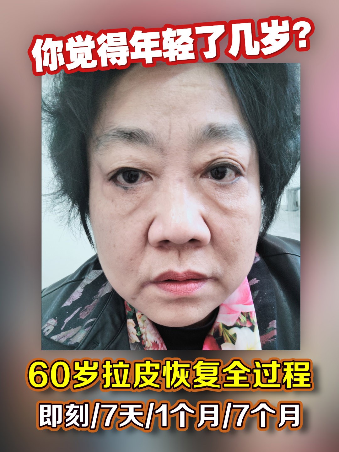 60岁拉皮恢复全过程,即刻、7天、1个月、7个月,你觉得年轻了几岁?