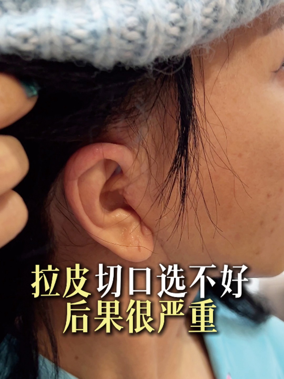 精细的拉皮手术,恢复好之后,耳前几乎看不出来切口的痕迹
