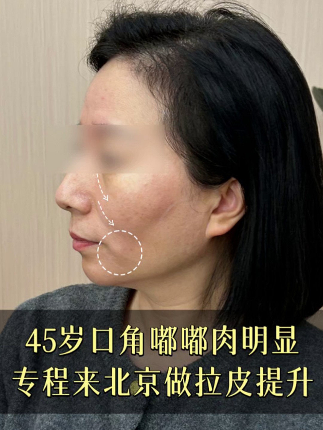 45岁口角嘟嘟肉明显,专程来北京做拉皮提升