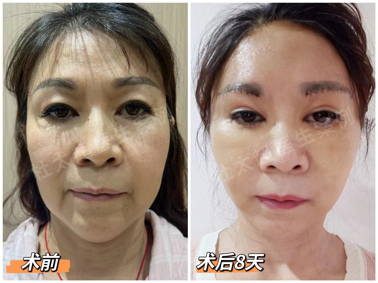 手术后的第八天,我用惴惴不安的心情看向镜子,倒影里呈现出我的新面孔。轻轻抚摸,那平滑又紧致的脸颊,每一寸肌肤都像是新生。稍显肿胀、略微淤青的我,看到眼皮的提升,仿佛看到凤凰展翅,等待着新生。