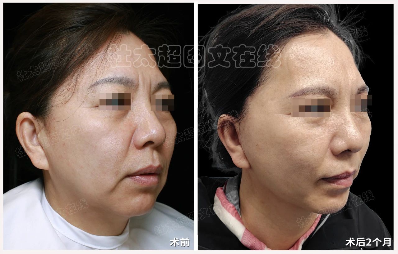 下垂的面部仿佛被时间轻轻提起,轮廓线流畅而紧致,苹果肌重现往昔的饱满与活力,法令纹悄然淡去,下颌缘的紧致让我重拾了侧颜的自信。