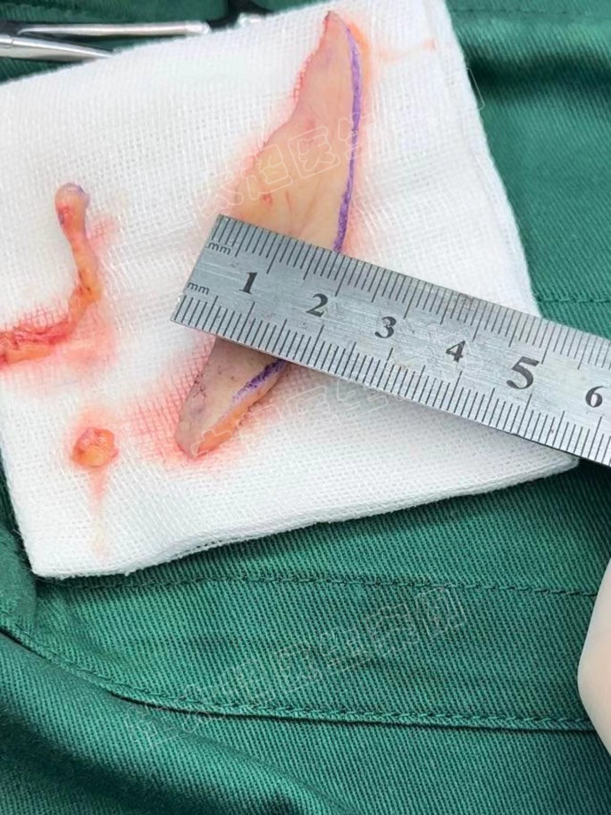 图三:去除的单侧部分皮肤组织量,宽1.8cm,长约5cm