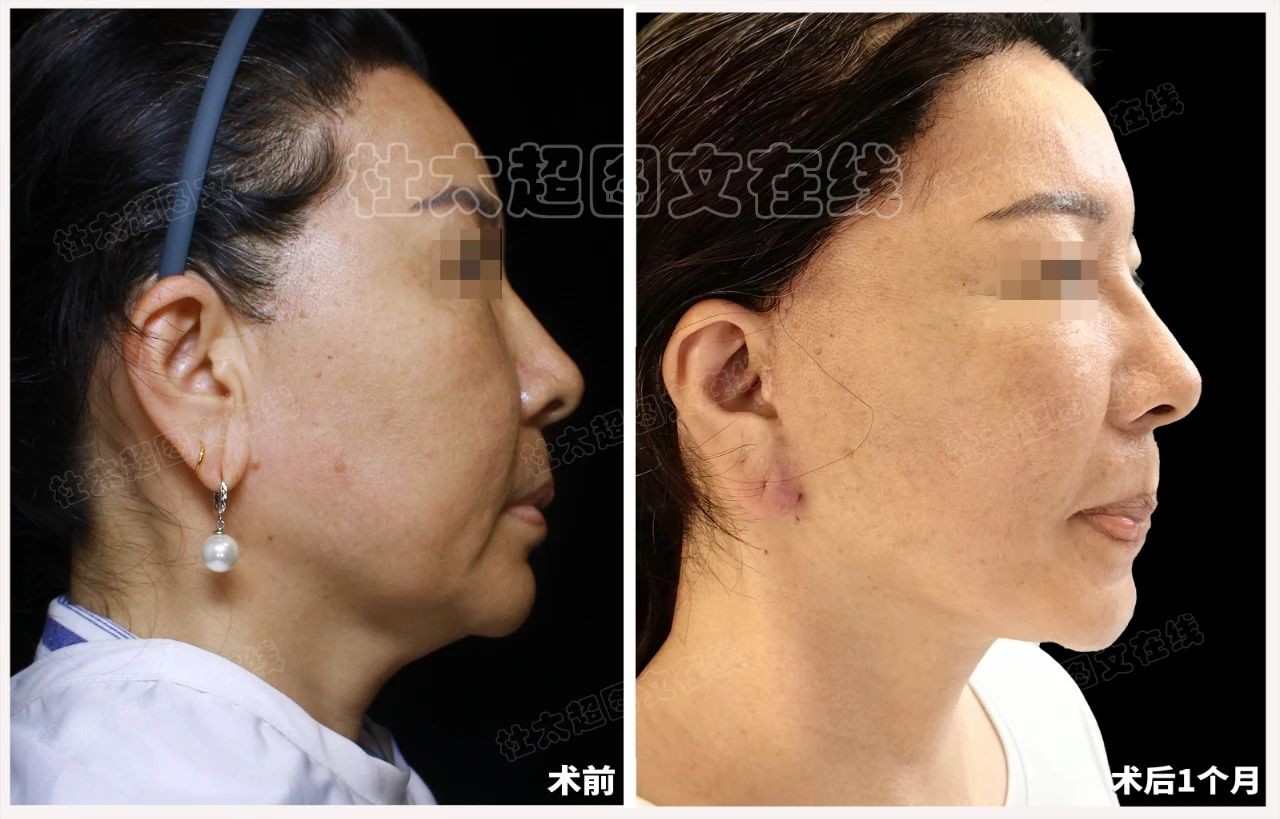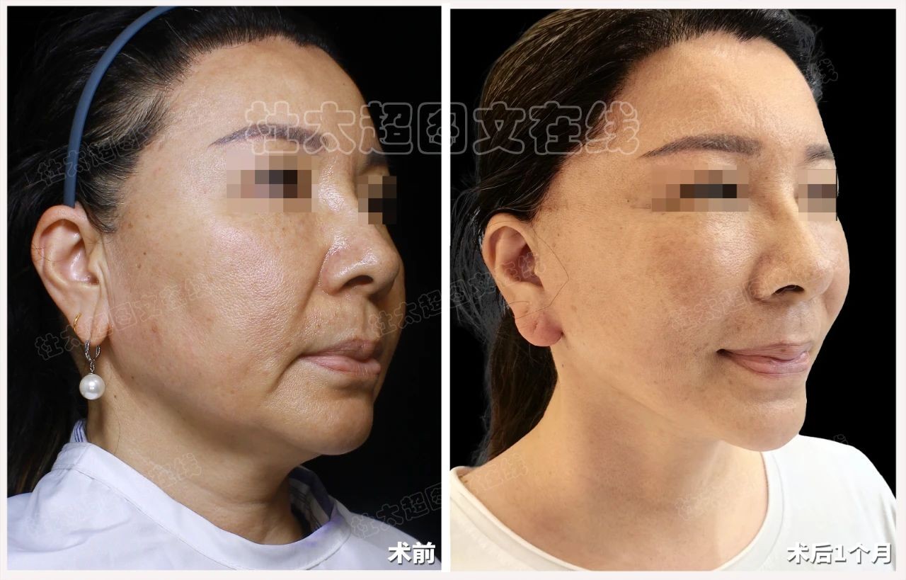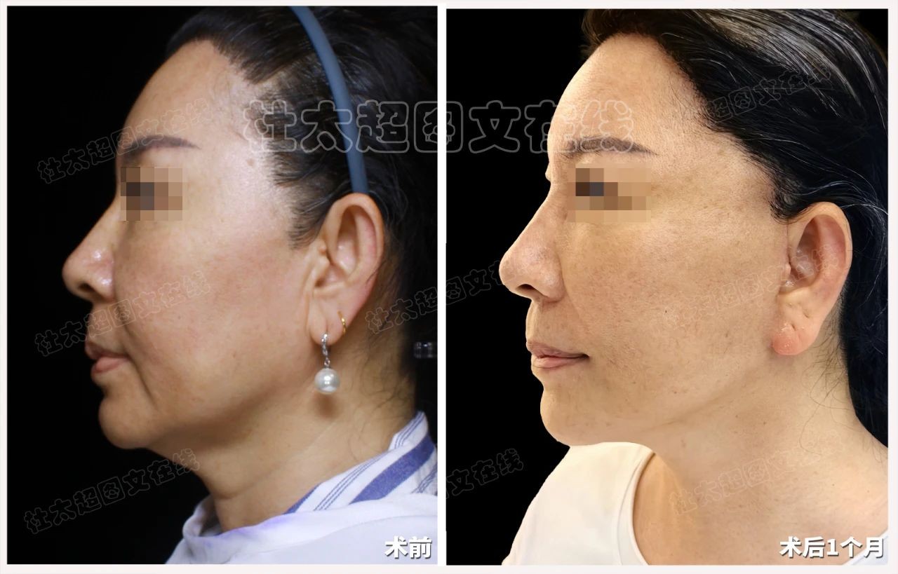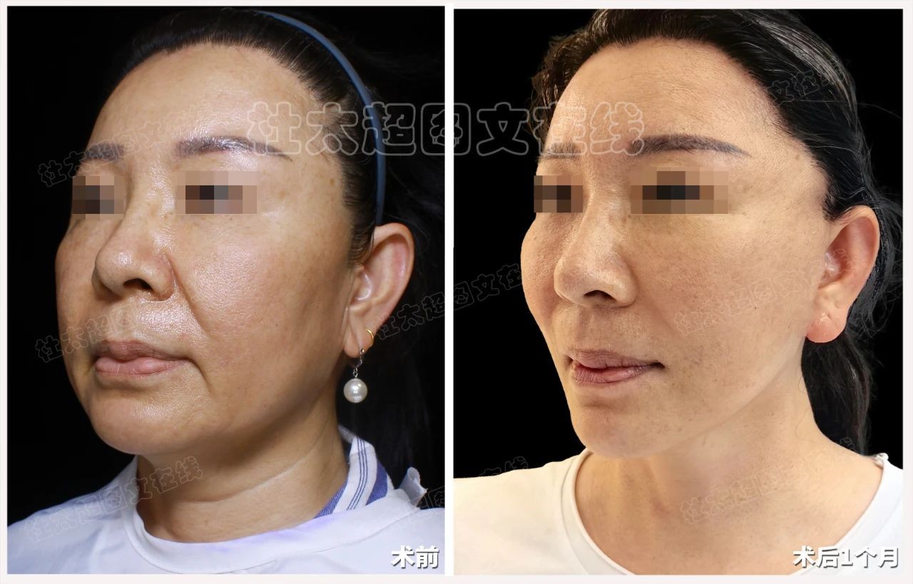 一个月的时间仿佛一场魔法般的蜕变,下垂的苹果肌重新找回了青春的饱满与弹性,法令纹明显淡化,下颌缘线也变得紧致而清晰。