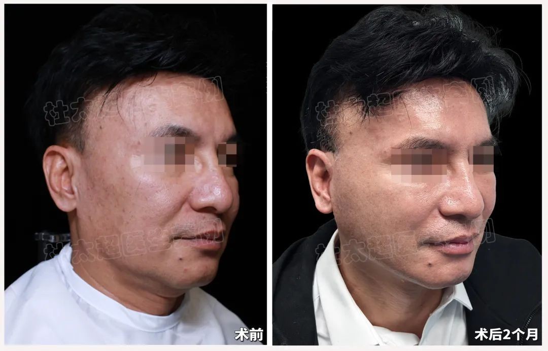 如今,术后已经过去了两个月,他的面部形象发生了显著的变化。