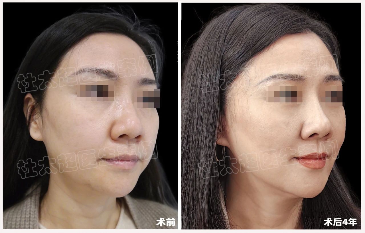 一、手术背景与需求 这位48岁的女士,由于年龄的增长,面部出现了苹果肌下垂、法令纹加深、面颊部凹陷及下颌部松垂等问题,严重影响了她的外貌和自信心。 经过多次的咨询与面诊,她最终选择了杜太超教授的caw小切口面部提升结合钻石精雕手术方案,希望通过微创方式实现面部年轻化。 二、手术优势分析 1. 微创隐蔽,恢复迅速 caw小切口面部提升缩紧术的最大亮点在于其微创性。 手术切口可人性化设计,一般位于颞部发际线内或耳前,年纪较大者可再顺延至耳后,位置隐蔽,创伤小,术后恢复快。 同时,钻石精雕的点状切口也位于耳垂下方及下颏下方,同样保证了切口的隐蔽性,减少了术后疤痕的困扰。 2. 效果自然持久 手术通过对面部皮肤、肌肉及SMAS筋膜的精细操作,实现了深层组织的提升与浅层皮肤的收紧。 这种多维度的提拉方式,不仅有效改善了面部松弛下垂的问题,还使面部轮廓更加清晰、紧致。 术后效果自然,且随着面部内部组织的逐步重组,效果在6个月至1年间达到最佳,长期维持效果可达8-12年。 3. 个性化定制 手术方案根据求美者的面部特点和需求进行个性化定制。 在本案例中,医生不仅考虑了中下面部的提升,还结合了钻石精雕技术对下面颈部进行塑形,实现了面部整体的年轻化效果。 这种个性化的设计,使得手术效果更加符合求美者的期望。 三、手术步骤简述 1. 术前准备阶段 在进行caw小切口面部提升缩紧术前,求美者需经历全面的术前评估。 这包括血常规、凝血功能检测以及心电图检查,旨在评估其全身健康状况,确保手术的安全性。 此外,基于求美者的面部特征、美学需求及预期效果,杜太超教授制定个性化的手术方案。 这一步骤要求医生具备深厚的面部解剖学知识及审美素养,以确保手术设计既符合医学原则,又能精准满足求美者的个性化需求。 术前准备还包括必要的药物调整,如停用抗凝血药物以避免术中出血风险,以及控制血压、血糖至适宜范围,为手术创造最佳条件。 2. 手术实施细节 手术在局部麻醉或全身舒适麻醉下进行,确保求美者在整个过程中无痛感且放松。 caw小切口面部提升缩紧术的核心在于精准分离面部各层组织,直至SMAS筋膜层。 此层是面部提升的关键所在,通过不可吸收线材进行环形锚定、折叠缩紧及提升,有效改善面部松弛下垂。 同时,结合先进的钻石精雕技术,针对下面颈部进行精细化塑形,通过精确去除多余脂肪及紧致皮肤,使面部轮廓更加清晰、紧致,实现面部年轻化的自然效果。 3. 术后护理指导 术后护理是手术成功的重要保障。 求美者需遵循医嘱,保持伤口区域的清洁与干燥,避免感染。 限制剧烈运动及摄入刺激性食物,以减少对伤口的刺激,促进愈合。 定期复诊,由专业医生评估伤口愈合情况及面部提升效果,及时发现并处理任何可能的并发症,如血肿、感染或缝线反应等,确保术后恢复顺利。 四、术后四年效果评估 经过四年的时间,这位女士的面部状态依然保持得相当好。 苹果肌得到了有效提升,法令纹明显淡化,面颊部凹陷得到改善,下颌部线条更加紧致。 整个面部呈现出自然、年轻的状态,与术前相比,仿佛时光倒流了数年。 这充分证明了caw小切口面部提升缩紧术结合钻石精雕手术在面部年轻化领域的卓越效果。 综上所述,caw小切口面部提升缩紧术结合钻石精雕手术以其微创隐蔽、效果自然持久、个性化定制等优势,为众多追求青春美丽的男女提供了有效的抗衰老解决方案。 通过本文的深度分析,我们不难发现,这一手术方案在面部年轻化领域具有广阔的应用前景和深远的社会意义。