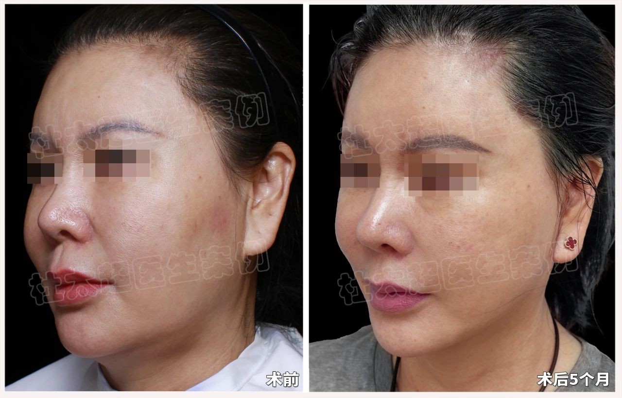 手术那天,我紧张又期待。杜教授以精湛的技艺,在隐蔽位置进行了微创切口。他利用先进的提升材料,对我的中下颈部进行了深层且全面的提拉。整个过程,我几乎没有感受到太多的疼痛,只有对术后效果的期待和憧憬。针对我的苹果肌问题,还结合了于波主任的吸脂之术和钻石精雕,他小心翼翼地吸取出多余的脂肪组织,同时保留了必要的脂肪,让我的苹果肌恢复到既紧致又自然的状态。那一刻,我仿佛看到了自己年轻时的模样,那份温婉与精致,再次回到了我的脸上。