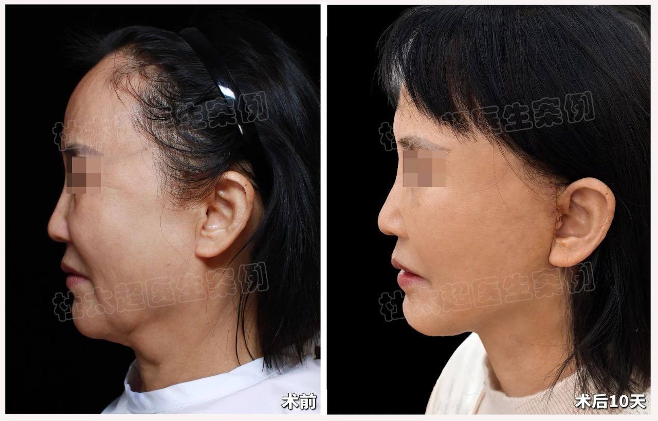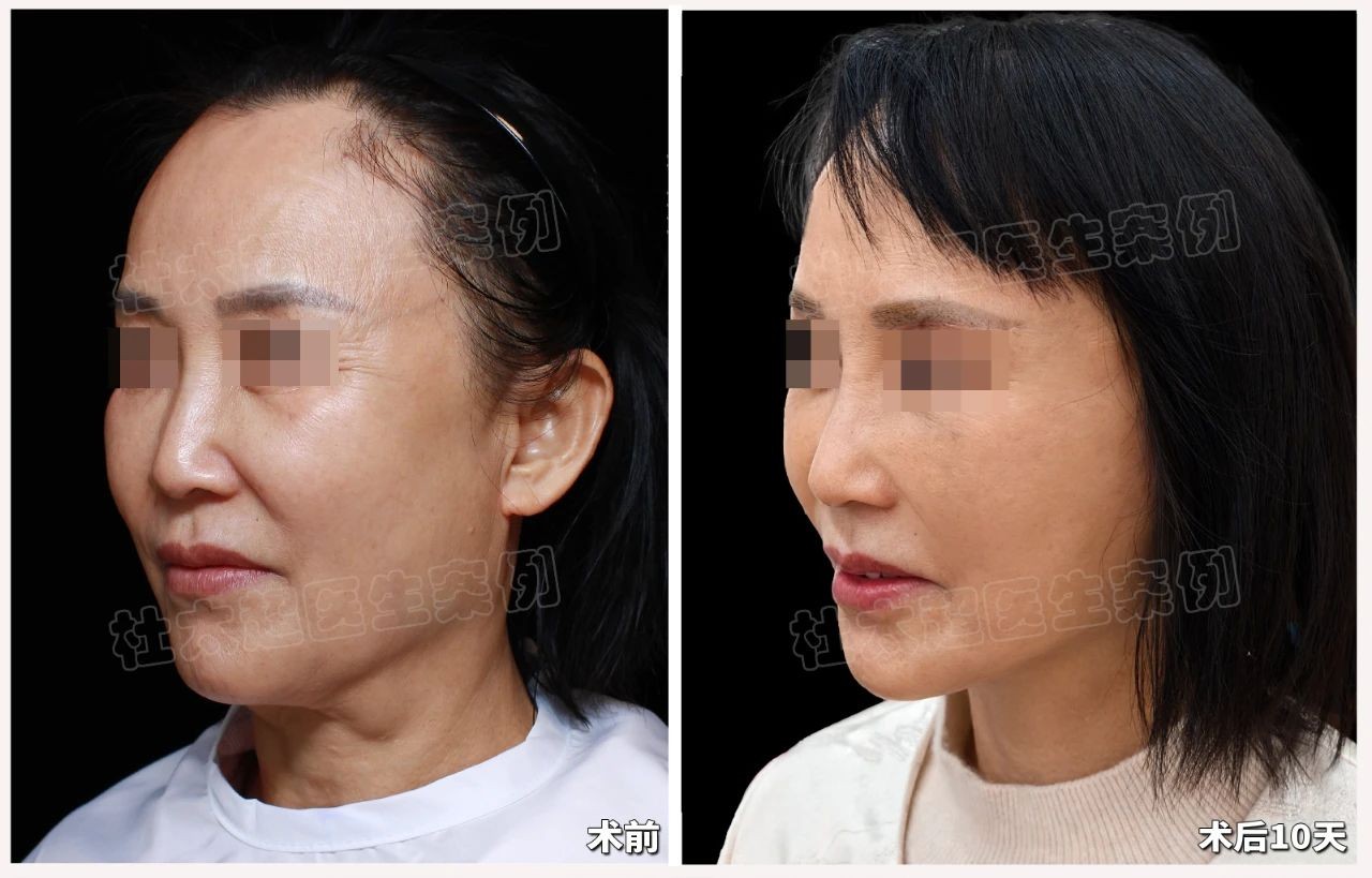 术后,我惊讶于自己的变化。面部肌肤变得紧致有弹性,原本松弛下垂的脸颊和下巴区域如今线条流畅、轮廓分明。曾经干瘪的脸颊重新恢复了饱满度,法令纹和嘴角木偶纹也得到了显著改善。手术不仅改善了我的面部松弛问题,还提升了面部的整体轮廓。更重要的是,我的眼部问题也得到了有效改善,眼皮松弛和眼袋消失了,眼睛看起来更加明亮有神。