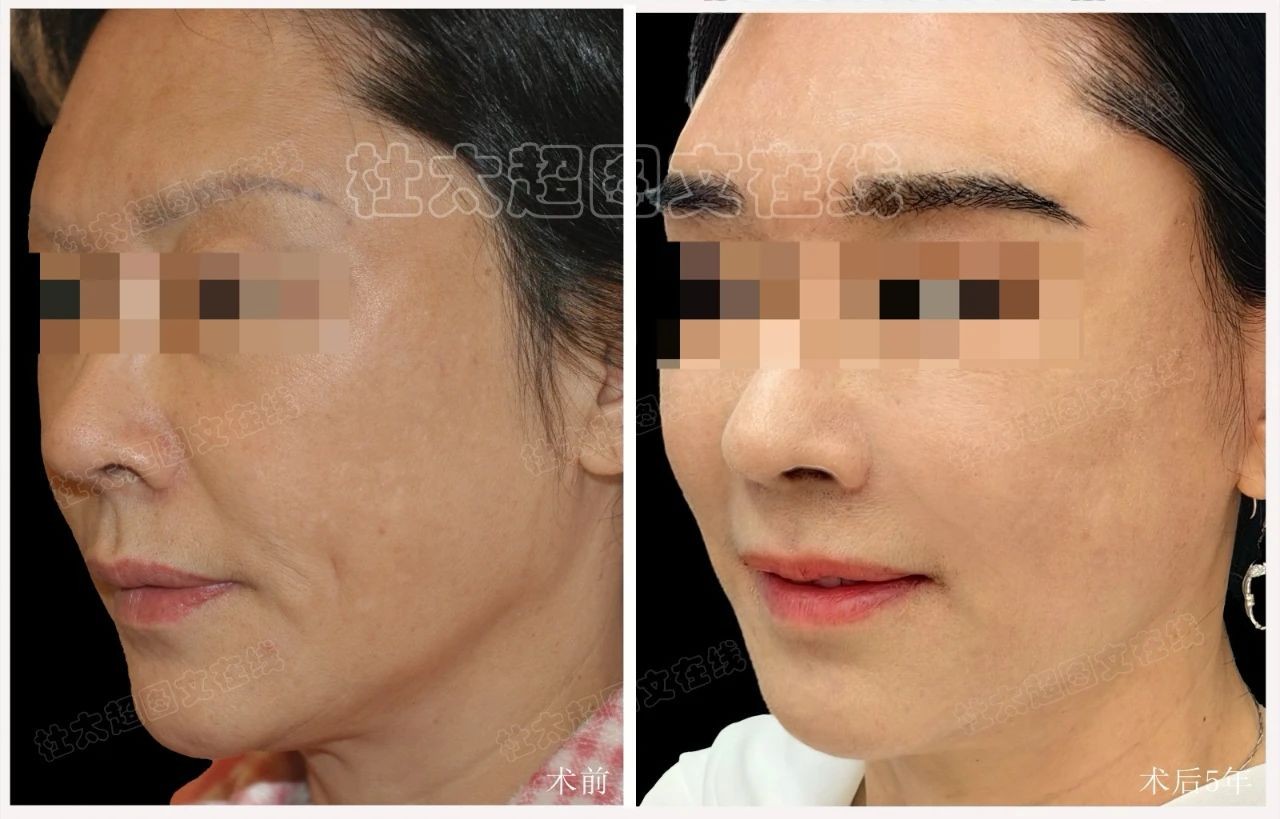 五年后,当我再次见到她时,她的皮肤依然紧致光滑,面部轮廓清晰立体。她告诉我,手术后这几年的她彷佛重新找回了自信和活力,感觉自己回到了十几年前的状态。现在的她笑容灿烂而自信,仿佛岁月从未在她身上留下痕迹。她说,手术不仅让她在女儿的毕业典礼上绽放了最美的光彩,现在更让她在人生的道路上重拾了活力。