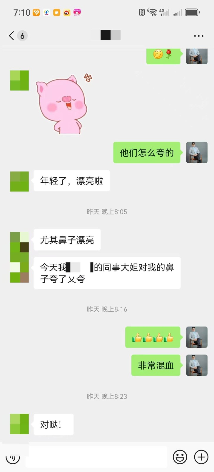 找我做了拉皮提升+鼻综合的妹妹,昨天找我聊天,反馈说每天沉浸在夸夸里