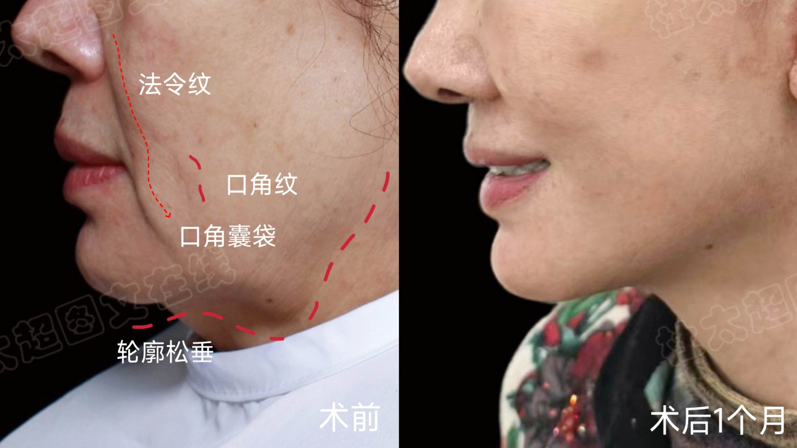 法令纹可以通过颞部发际线内切口进行提升,不仅会改善法令纹,同时对中面部整体有提升作用,复位苹果肌,改善中面部下垂。