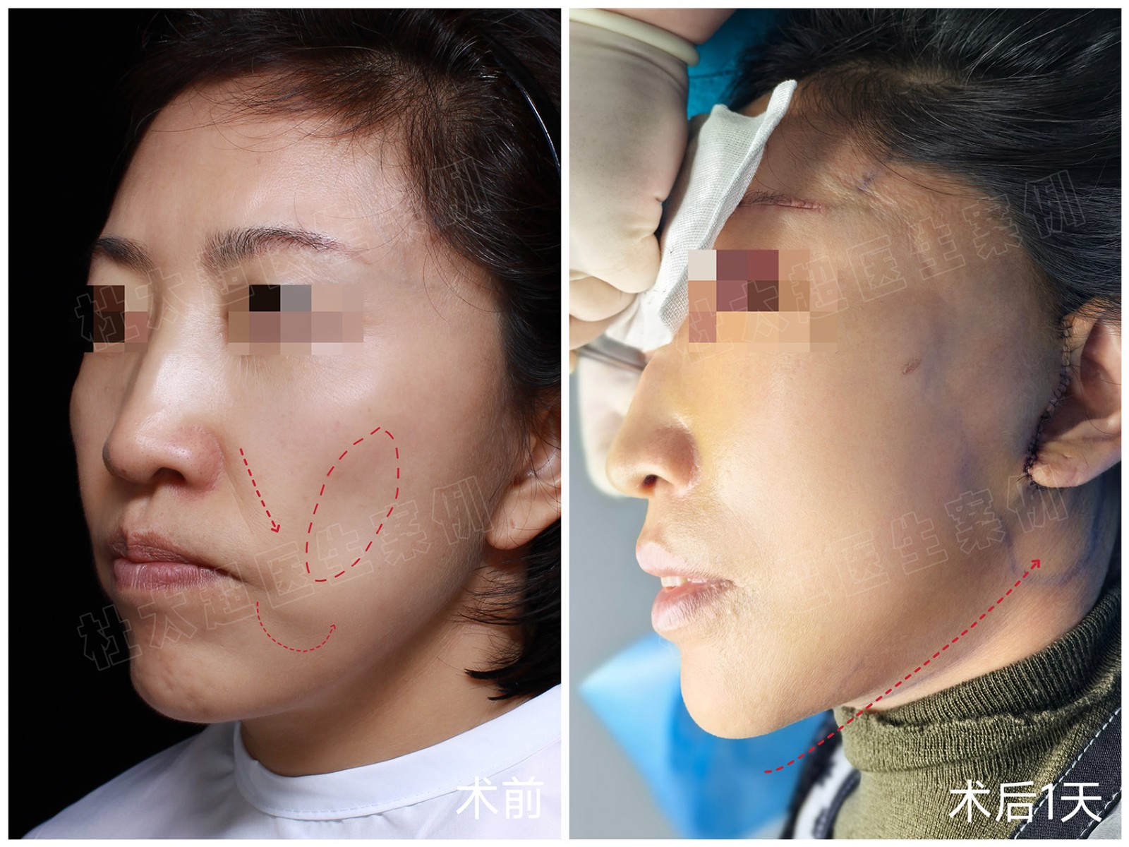 细微之处见改变,拉皮手术前后对比图术前,皮肤略显松弛,轮廓微微下垂,法令纹明显,口角囊袋凸出,面颊因组织移位呈现凹陷状。术后,肌肤...