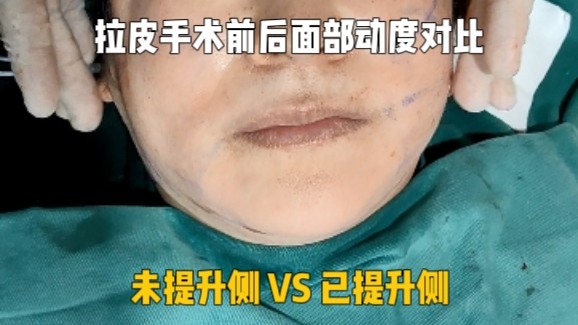 拉皮前后面部动度对比,细微之处见真章,提升前宣软的面部组织,提升后立刻变紧致