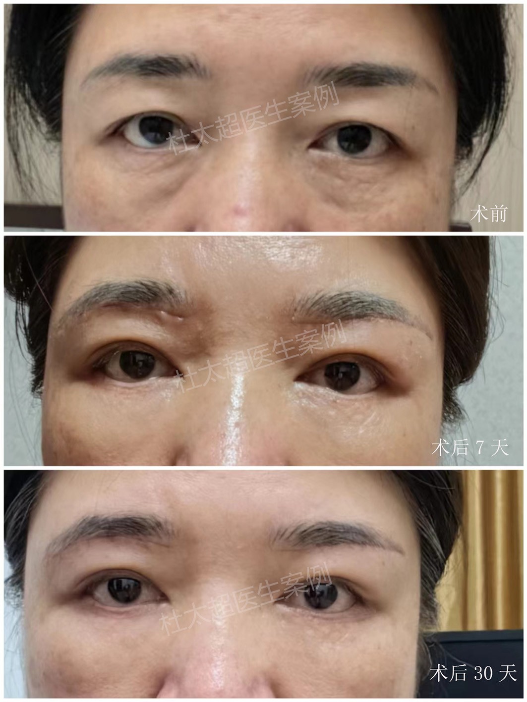 47岁眼周出现了明显的衰老问题(眼袋、泪沟、眼皮松弛),通#眼周年轻化# 手术改善,术后恢复效果如图。注:其手术方案为上眼睑松弛提升+...