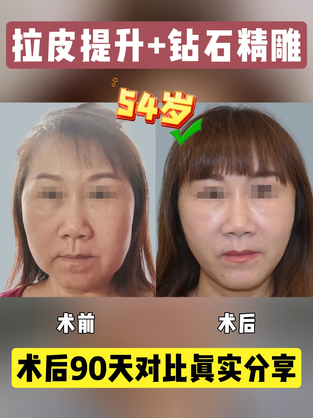 56岁女士面部松弛、法令纹显现,caw小切口面部提升术能帮助您改善这些问题。手术特点:小切口,创伤小,风险低。根据每个求美者的具体情况...