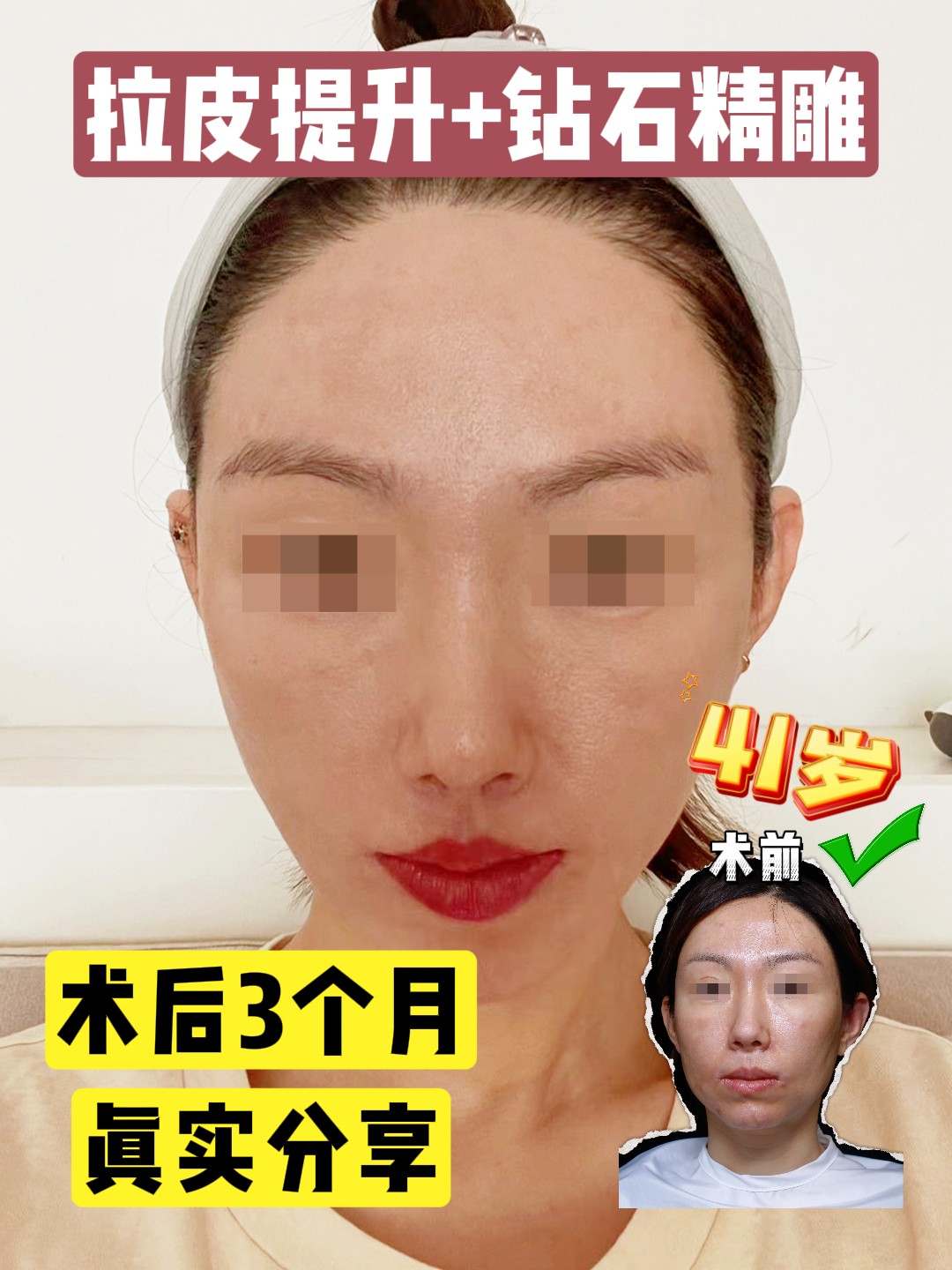 这位39岁女士因不甘面部松弛、下垂和老化,委托我进行全面的#拉皮手术#。做整体改善:川字纹、眼皮松弛、眼袋、鼻部调整、面部提升以及钻石...