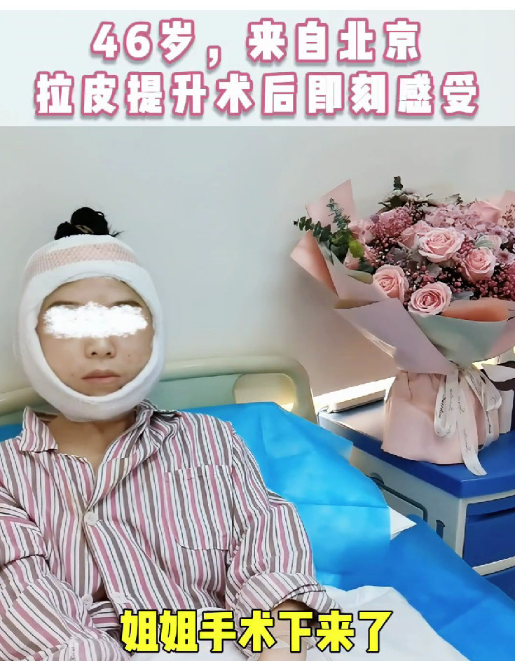 46岁求美者,面部松弛下垂,法令纹深,通过#拉皮手术# 提升术后即刻,分享真实感受及状态!