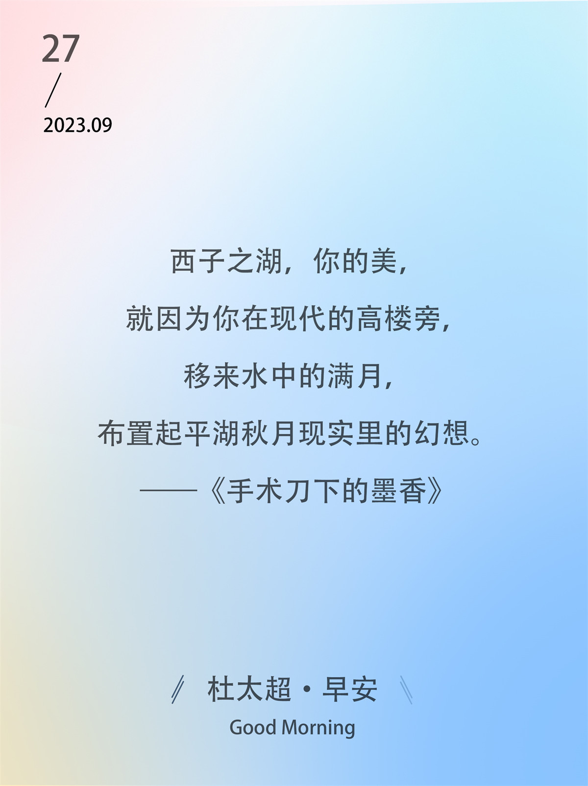 西子之湖,你的美,就因为你在现代的高楼旁,移来水中的满月,布置起平湖秋月现实里的幻想。——《手术刀下的墨香》