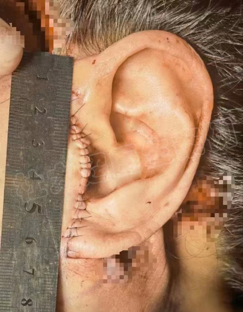 今天手术的求美者在外院做的拉皮提升,术后耳朵变形(耳垂拉长),找到我进行修复 沿原刀口位置做切开,就近剥离锚定提升固定smas筋膜层,使整个中下面颈部整体上提复位。 最后对耳垂位置进行修复缝合,术后即刻效果如图二,耳垂形态恢复了,求美者非常开心