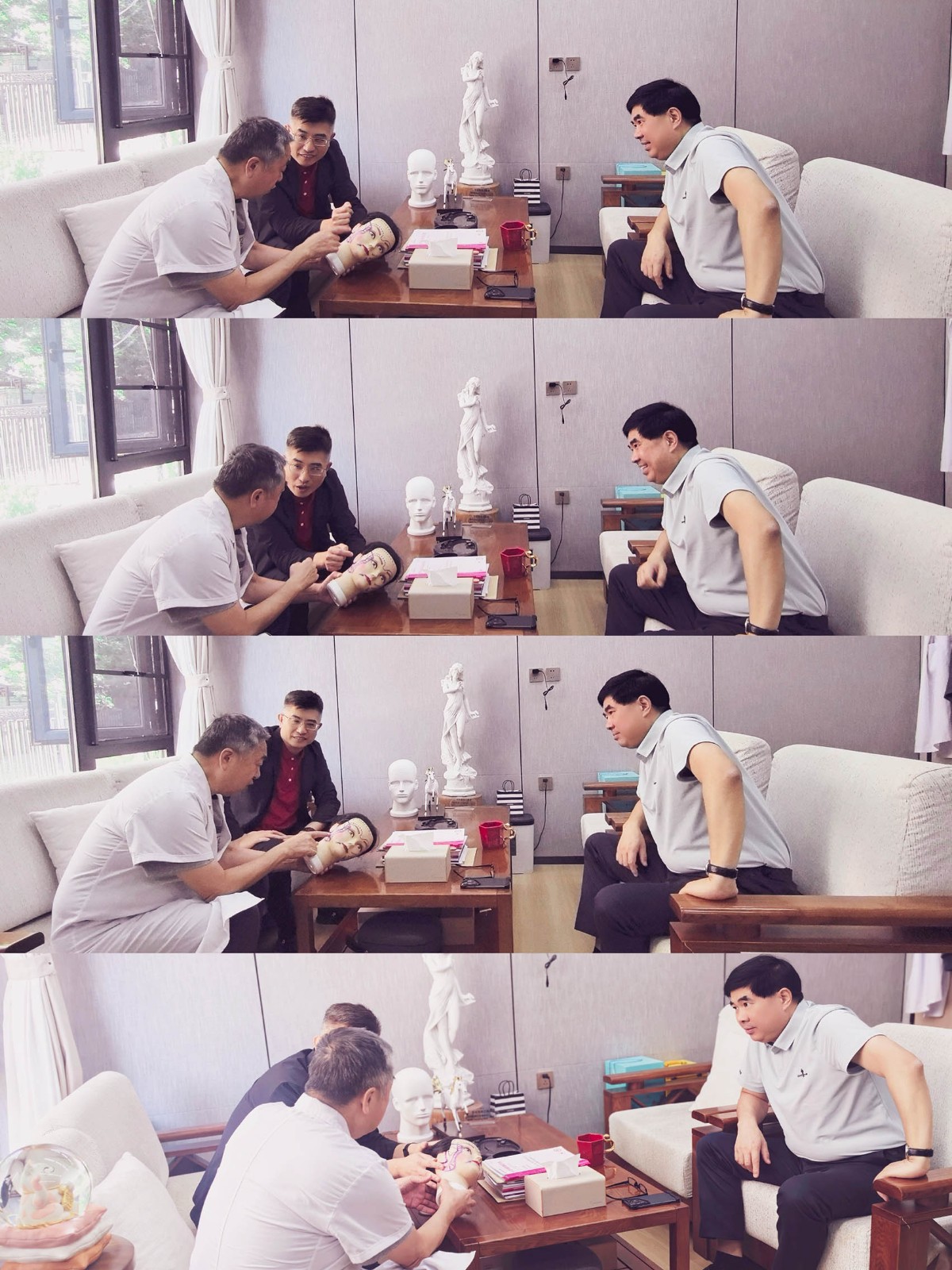 三位大咖坐在一起,进行技术交流探讨,分享各自的技术经验,再进行技术融合优化,虽然咱们现在的技术已经非常成熟,但我们不会停止进步,会逐步优化手术细节,让求美者在更加舒适、更小的创伤中完成美丽蜕变!