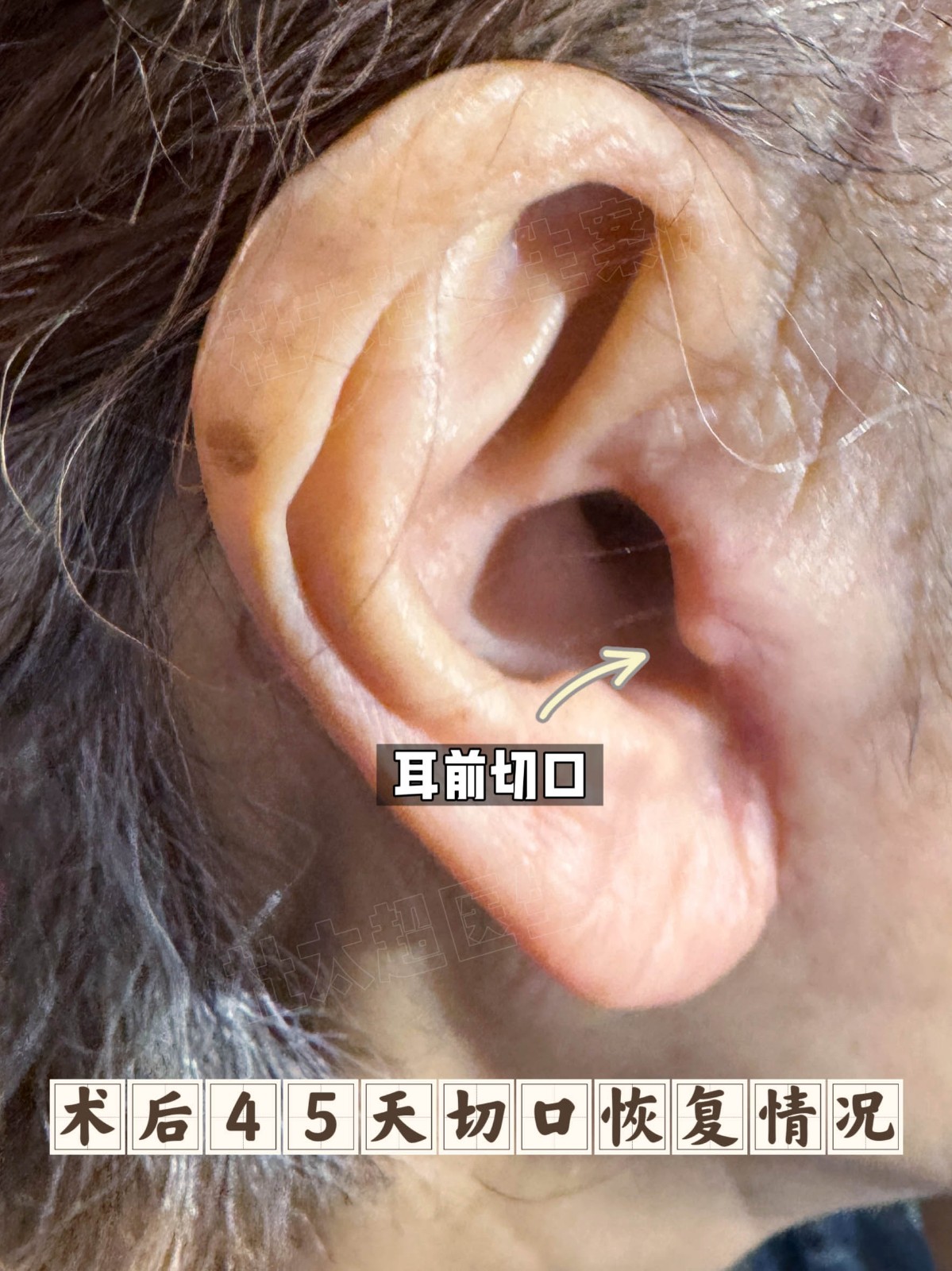 77岁求美者拉皮术后45天反馈!术前总担心自己体质恢复慢,没想到现在切口特别光滑,不凑近仔细看根本发现不了,后期还会更淡更自然,她直言“完全超出预期”~