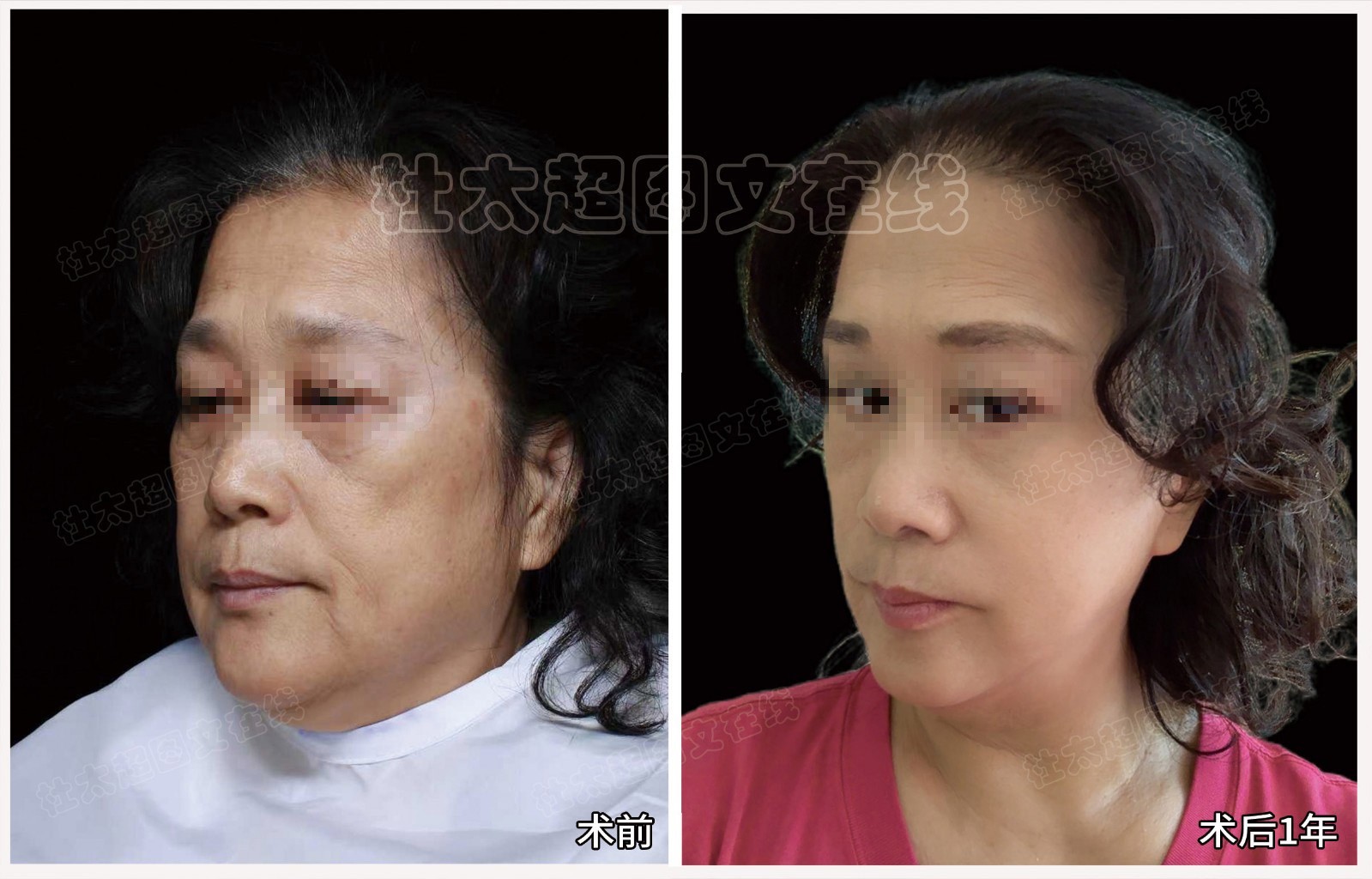 一年的时间带来的改变竟如此显著!术前能看到的面部下垂、苹果肌松弛、法令纹明显等问题,在术后都得到了很好的改善,面部线条变得紧致又柔和,能明显感受到由内而外的状态提升,抗衰选对方式真的太重要了。