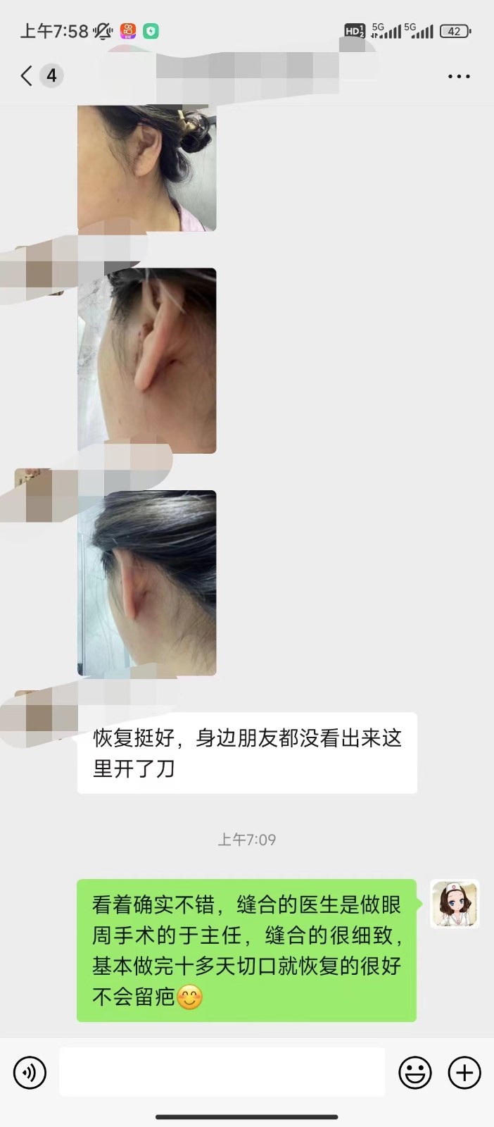 35岁, 2周前做caw小切口面部提升手术效果反馈 :切口很满意