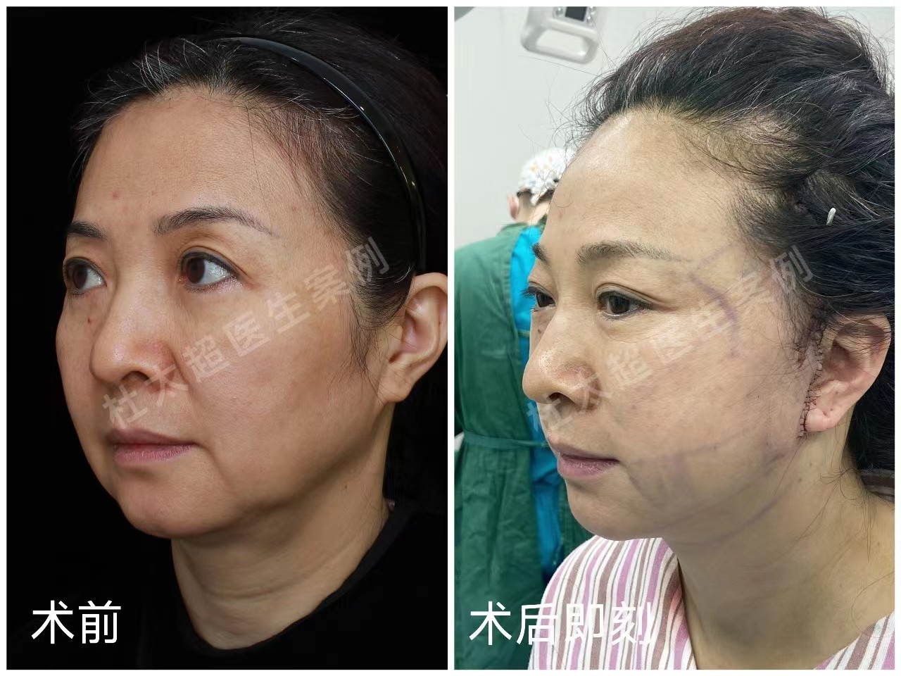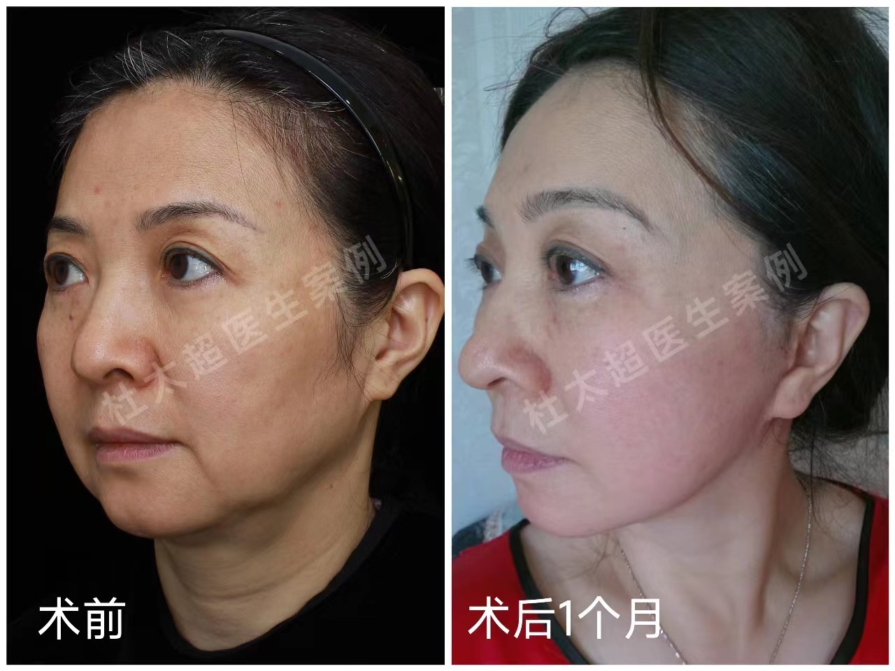 图7-9:求美者53岁,术前与术后即刻、术后1个月对比