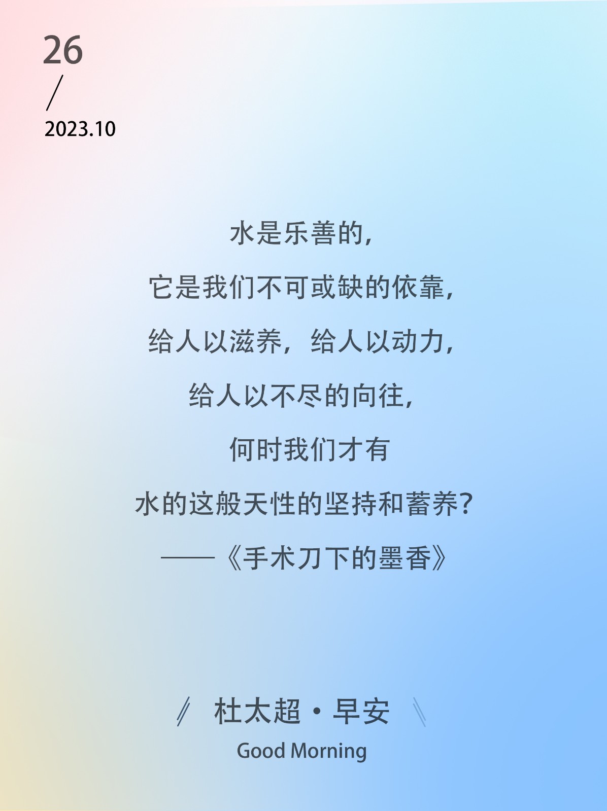 水是乐善的,它是我们不可或缺的依靠,给人以滋养,给人以动力,给人以不尽的向往,何时我们才有水的这般天性的坚持和蓄养?