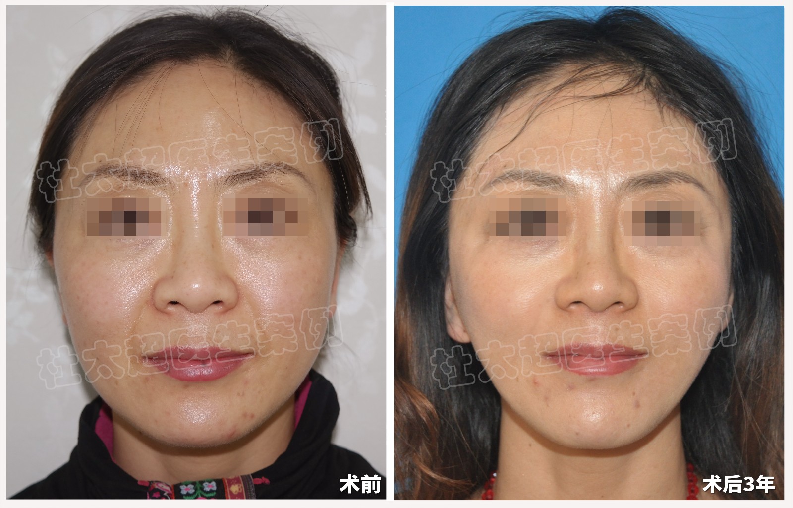 这位48岁的女士手术前想减轻法令纹,为她做了caw小切口面部提升术中下面部;全方位范围剥离、去除多余皮肤,复位松弛组织。术后三年,皮肤更紧实、年轻,手术带来了明显的改变。她很满意!#拉皮手术#