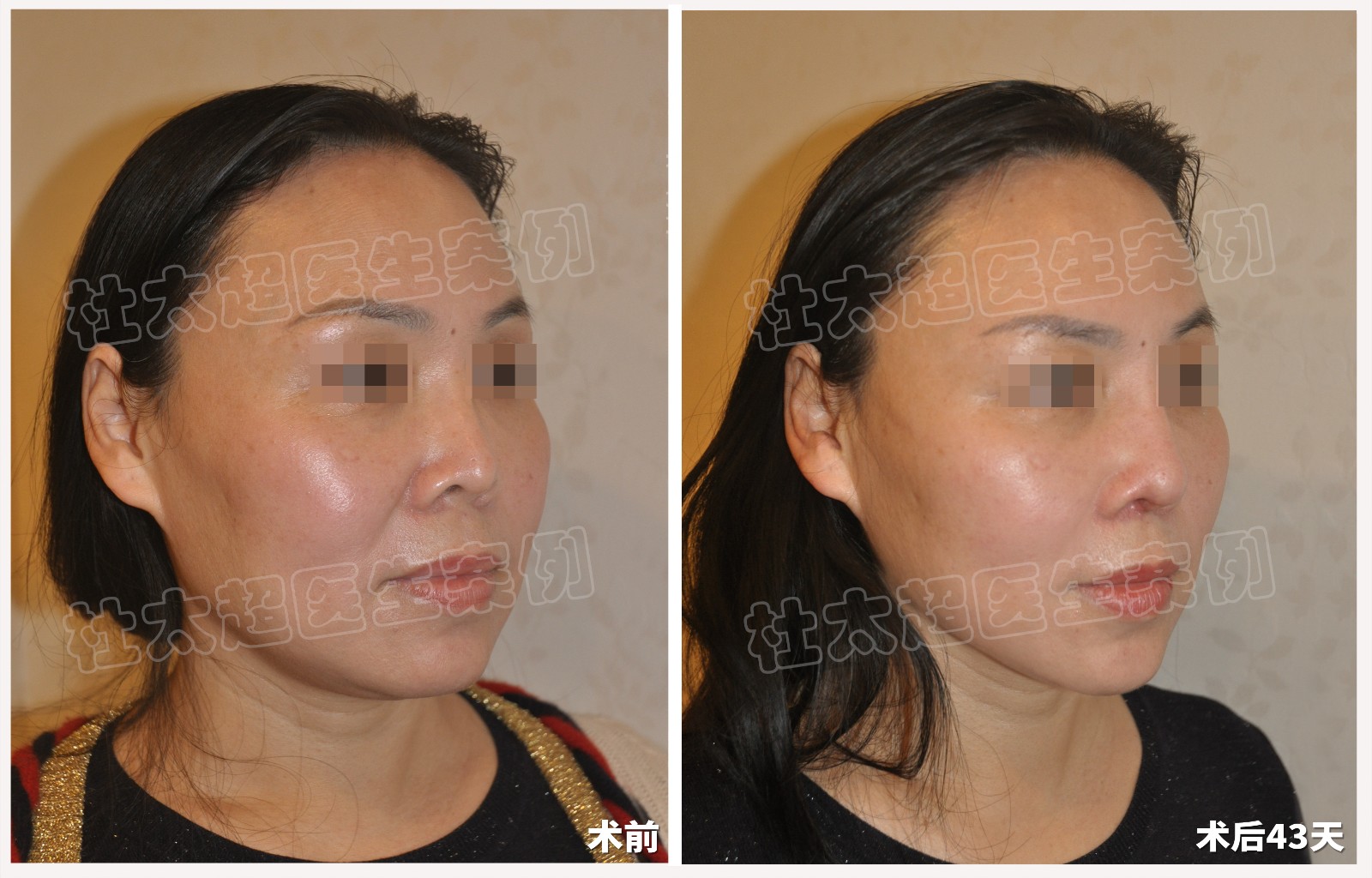 50+求美者受面部松弛、法令纹困扰,caw小切口面部提升手术43天后对比。