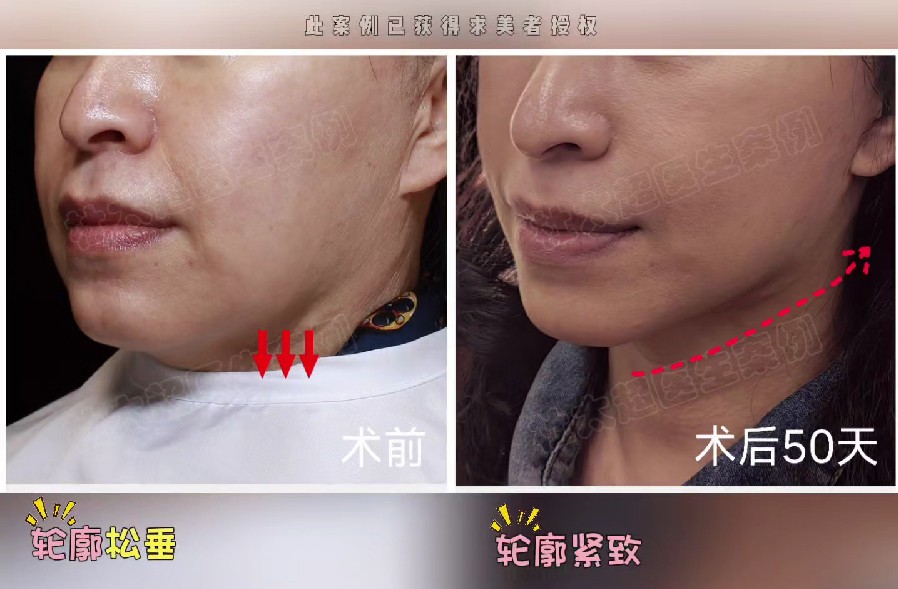 拉皮修复耳垂,术后耳垂形态复原,切口恢复良好