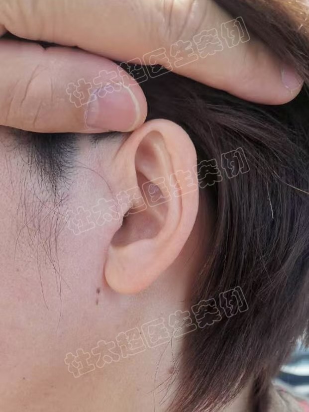 看这位姐姐做了面部拉皮半年了,这个是现在切口恢复的样子,还有一点淡淡的痕迹,但没有留疤