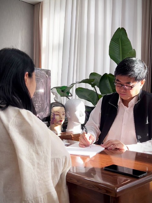 今天手术的求美者45岁,她追求面部整体的年轻态,现正在与杜教授进行术前沟通确认,一起期待她的美丽蜕变吧!