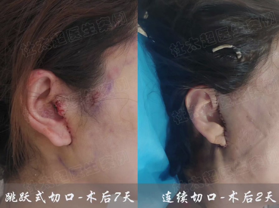 caw小切口面部提升缩紧术,两种切口的不同恢复情况~前期恢复进度不同,但远期恢复都能达到无痕状态哦!