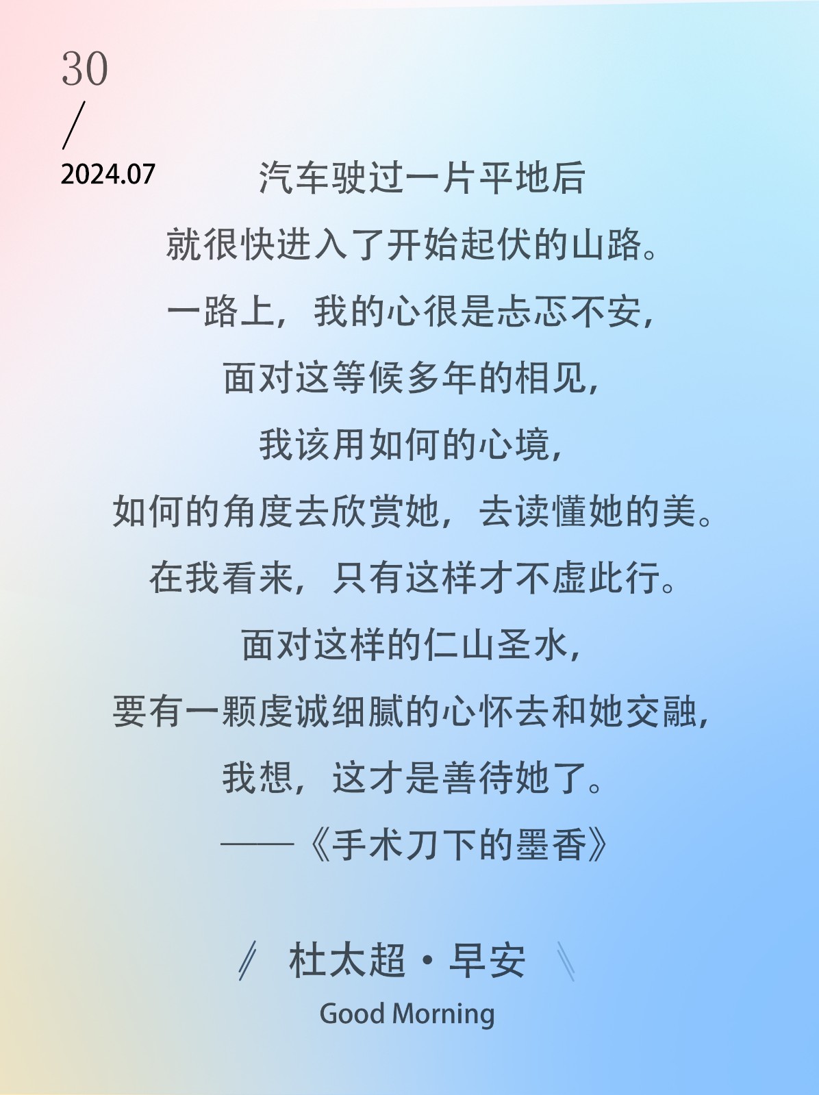 汽车驶过一片平地后就很快进入了开始起伏的山路。一路上,我的心很是忐忑不安,面对这等候多年的相见,我该用如何的心境,如何的角度去欣赏...