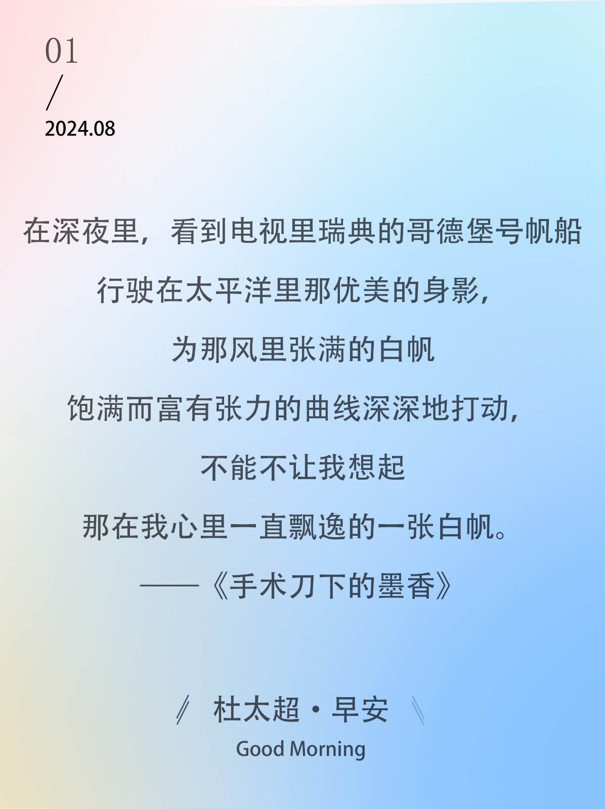 在深夜里,看到电视里瑞典的哥德堡号帆船行驶在太平洋里那优美的身影,为那风里张满的白帆饱满而富有张力的曲线深深地打动,不能不让我想起...