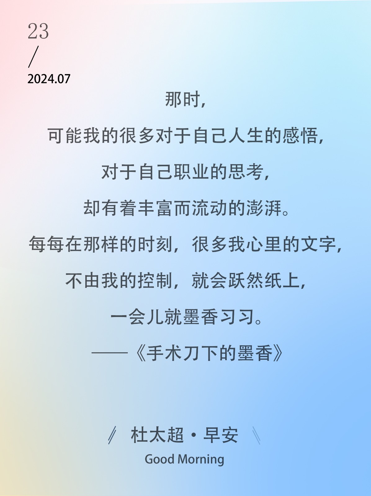 那时,可能我的很多对于自己人生的感悟,对于自己职业的思考,却有着丰富而流动的澎湃。每每在那样的时刻,很多我心里的文字,不由我的控制...