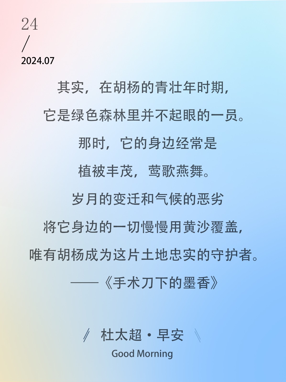 其实,在胡杨的青壮年时期,它是绿色森林里并不起眼的一员。那时,它的身边经常是植被丰茂,莺歌燕舞。岁月的变迁和气候的恶劣将它身边的一...