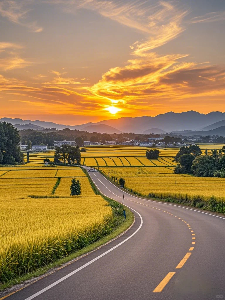 偶尔在通往远处的小路上散步,忽然看见极远处的山肩上挂着一轮夕阳,白云依偎着青山,这时我会想:如此美丽的夕阳预示着精彩的一天即将落幕...