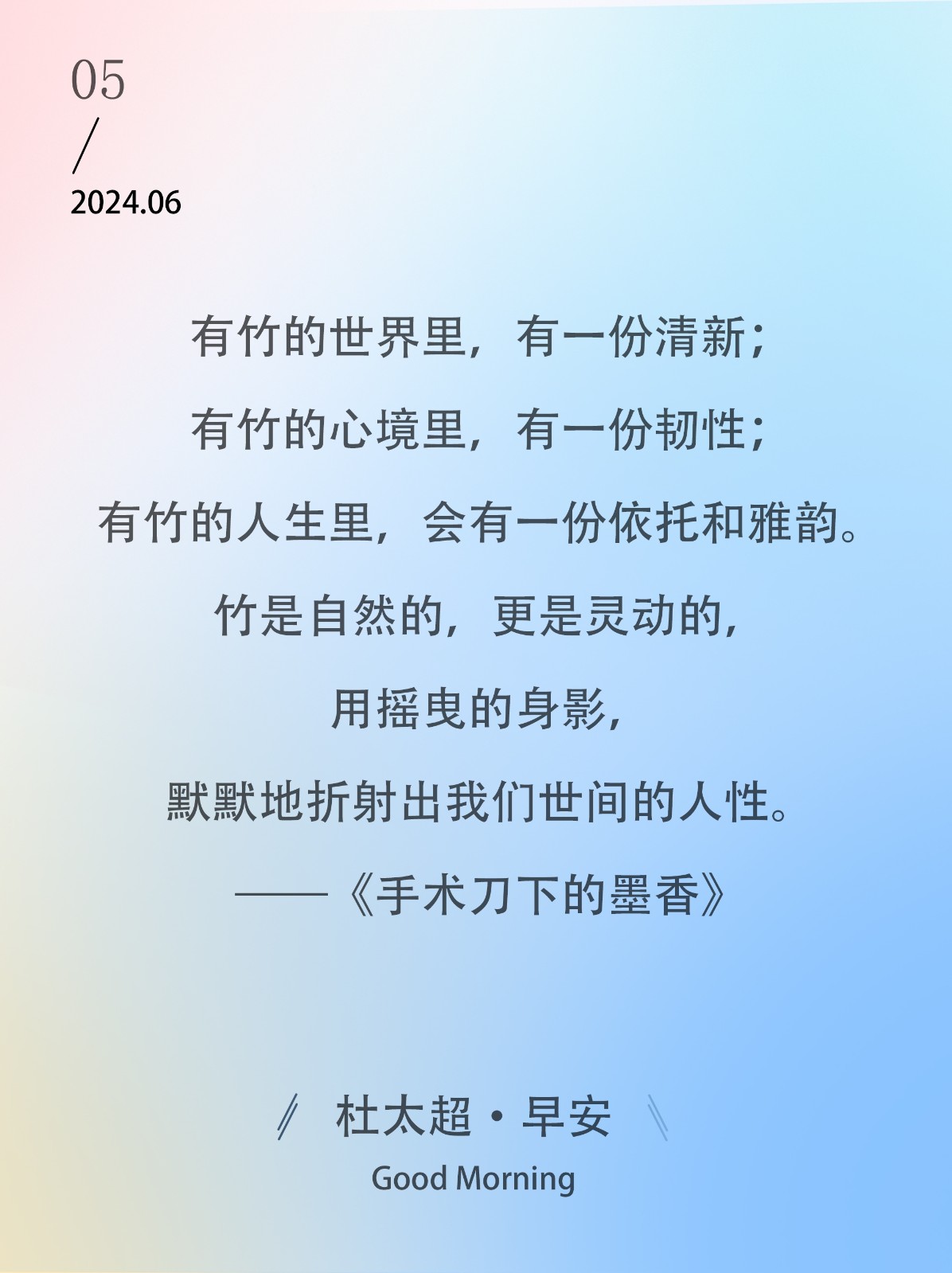 有竹的世界里,有一份清新;有竹的心境里,有一份韧性;有竹的人生里,会有一份依托和雅韵。竹是自然的,更是灵动的,用摇曳的身影,默默地...
