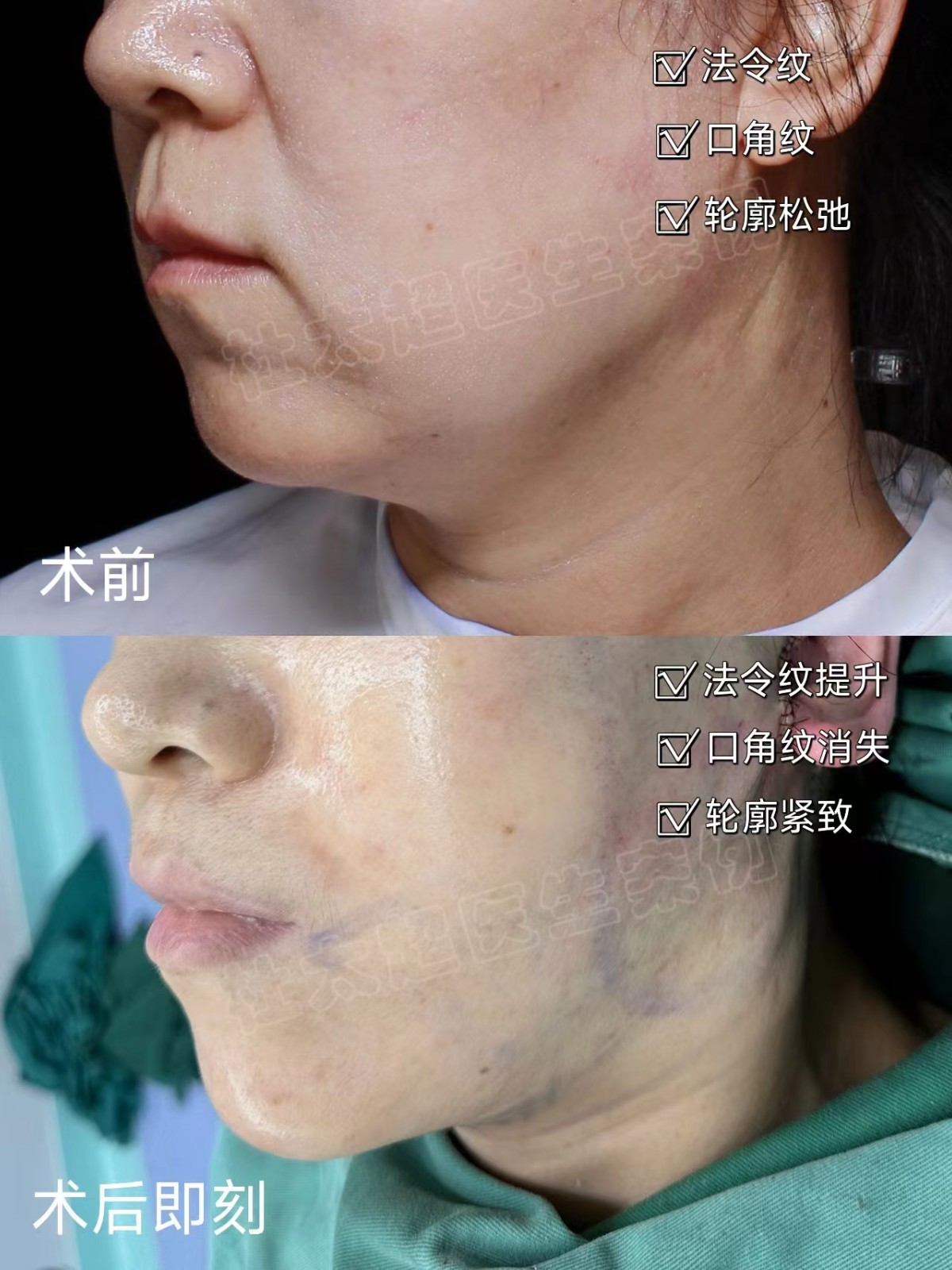 拉皮提升缩紧术后即刻提升效果很明确,除皱效果也很nice