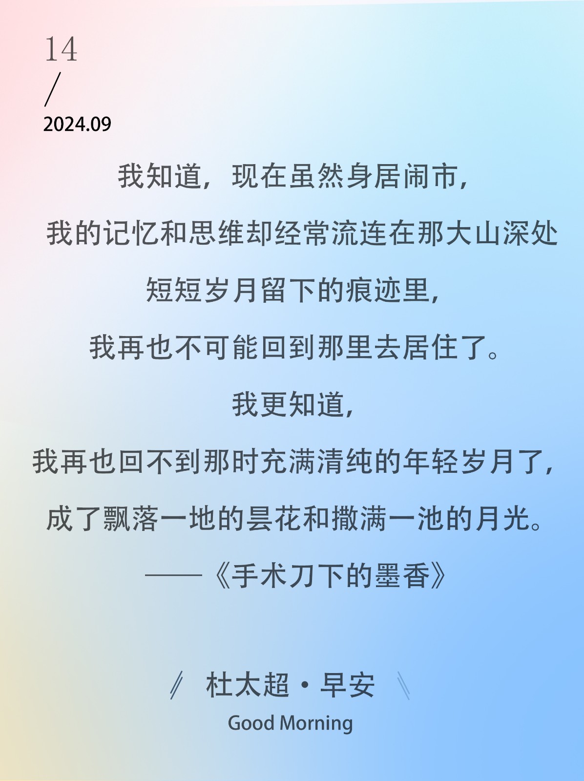 我知道,现在虽然身居闹市,我的记忆和思维却经常流连在那大山深处短短岁月留下的痕迹里,我再也不可能回到那里去居住了。我更知道,我再也...