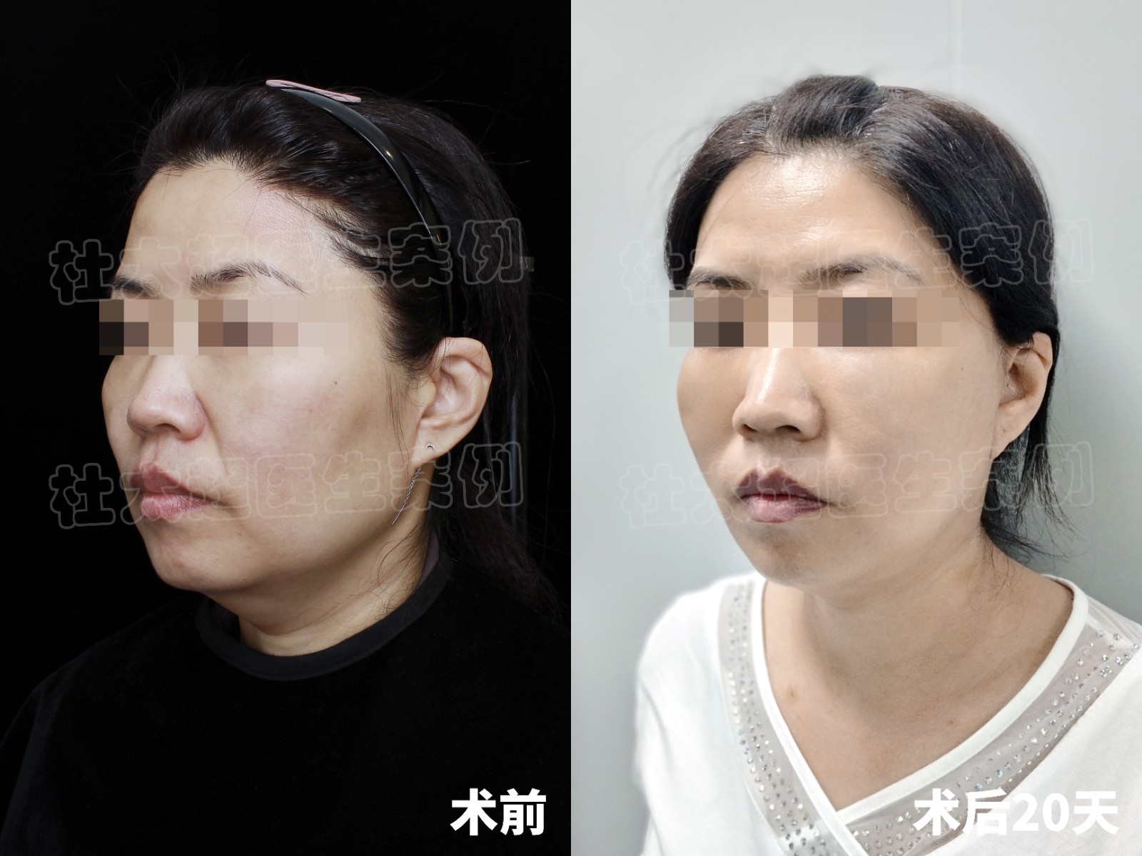 60岁,#caw小切口面部提升 +钻石精雕,术前法令纹明显,苹果肌下移,下颌缘脂肪堆积,术后改善法令纹,苹果肌复位,下颌缘提升效果明显可见。