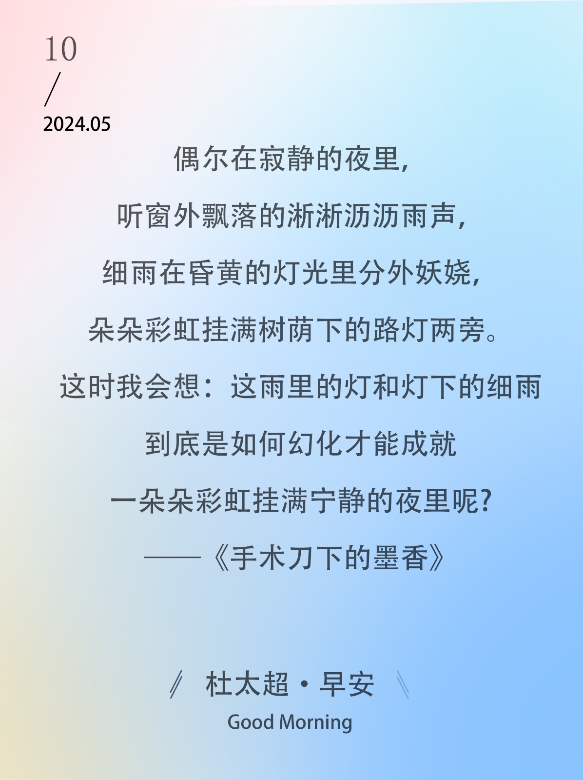 偶尔在寂静的夜里,听窗外飘落的淅淅沥沥雨声,细雨在昏黄的灯光里分外妖娆,朵朵彩虹挂满树荫下的路灯两旁。这时我会想:这雨里的灯和灯下...
