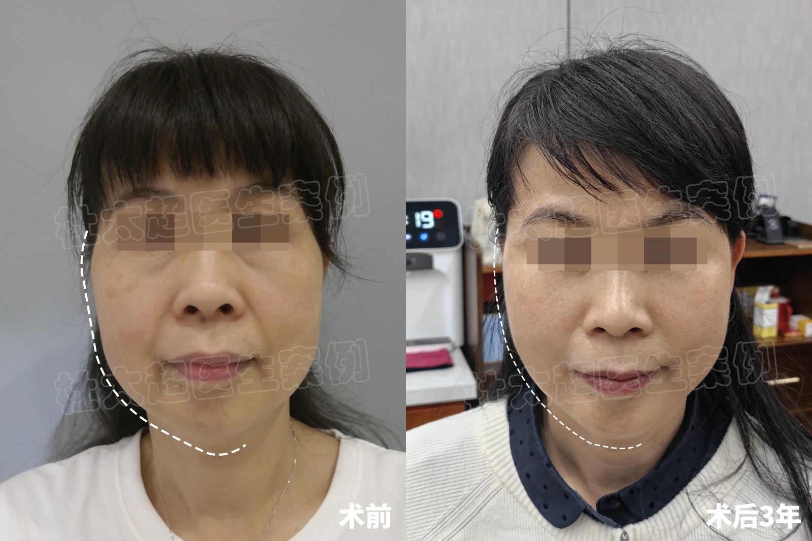 56岁,#caw小切口面部提升 +钻石精雕,术前法令纹深,苹果肌下移,下颌缘不清晰,术后3年法令纹消失,苹果肌复位,下颌缘清晰,肉眼可见的...