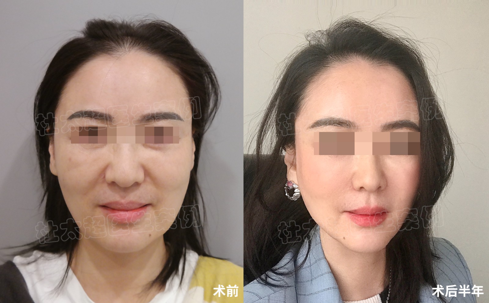 50岁,#caw小切口面部提升 +钻石精雕+去眼袋,术前眼袋膨出,苹果肌下垂,法令纹深,下颌缘不清晰,术后眼袋消失,苹果肌复位,改善法令纹...