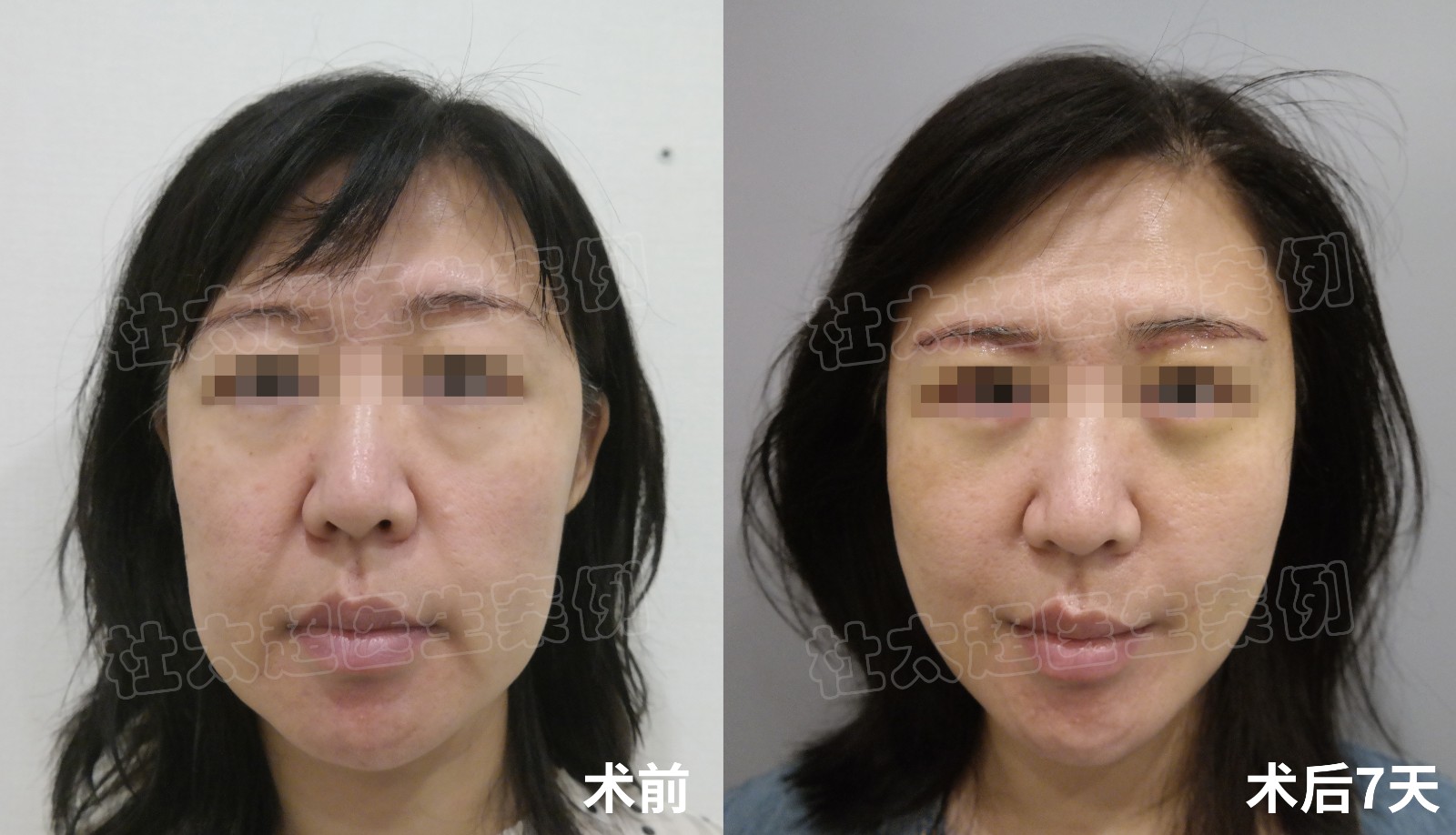 39岁,#caw小切口面部提升 +钻石精雕,术前法令纹深,下颌缘不清晰,术后7天改善法令纹,下颌缘紧致提升,整体面部瘦了一圈,很显年轻。