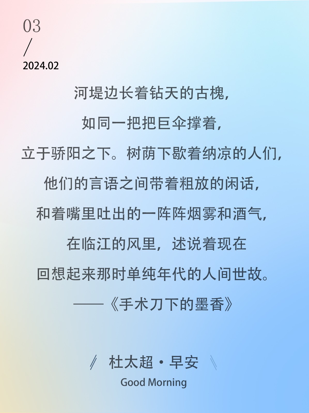 河堤边长着钻天的古槐,如同一把把巨伞撑着,立于骄阳之下。树荫下歇着纳凉的人们,他们的言语之间带着粗放的闲话,和着嘴里吐出的一阵阵烟...