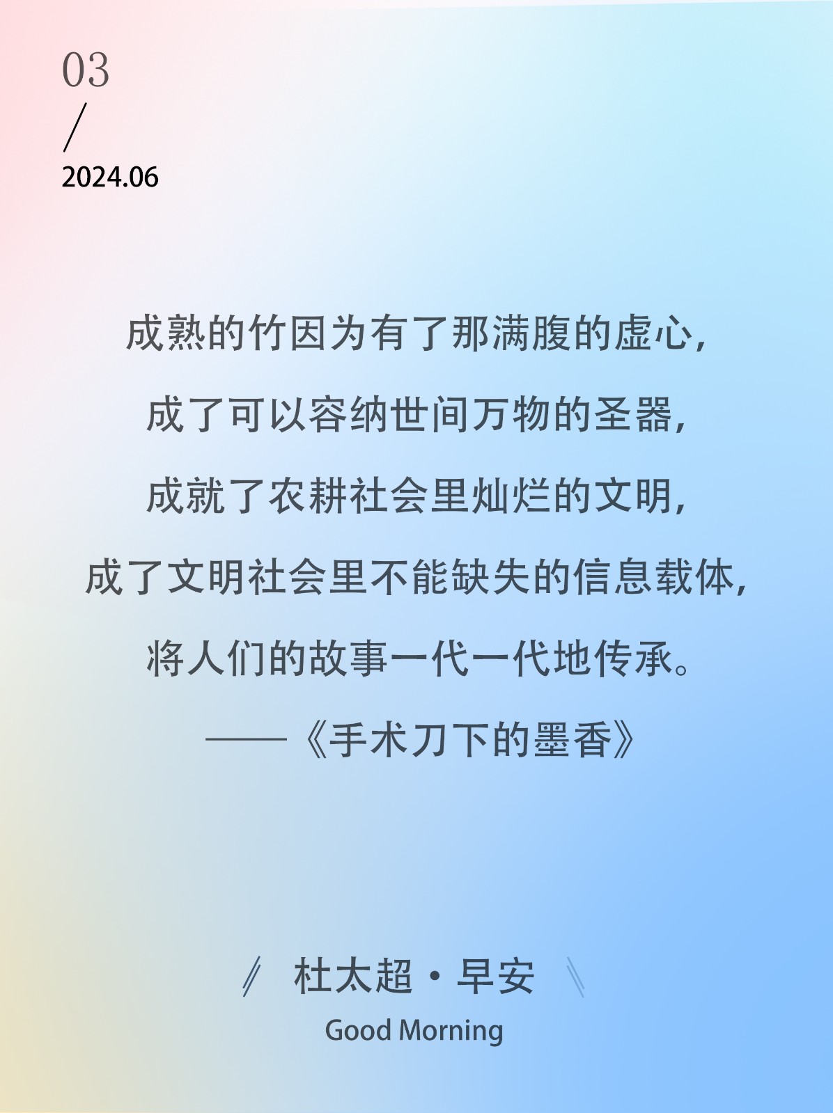 成熟的竹因为有了那满腹的虚心,成了可以容纳世间万物的圣器,成就了农耕社会里灿烂的文明,成了文明社会里不能缺失的信息载体,将人们的故...
