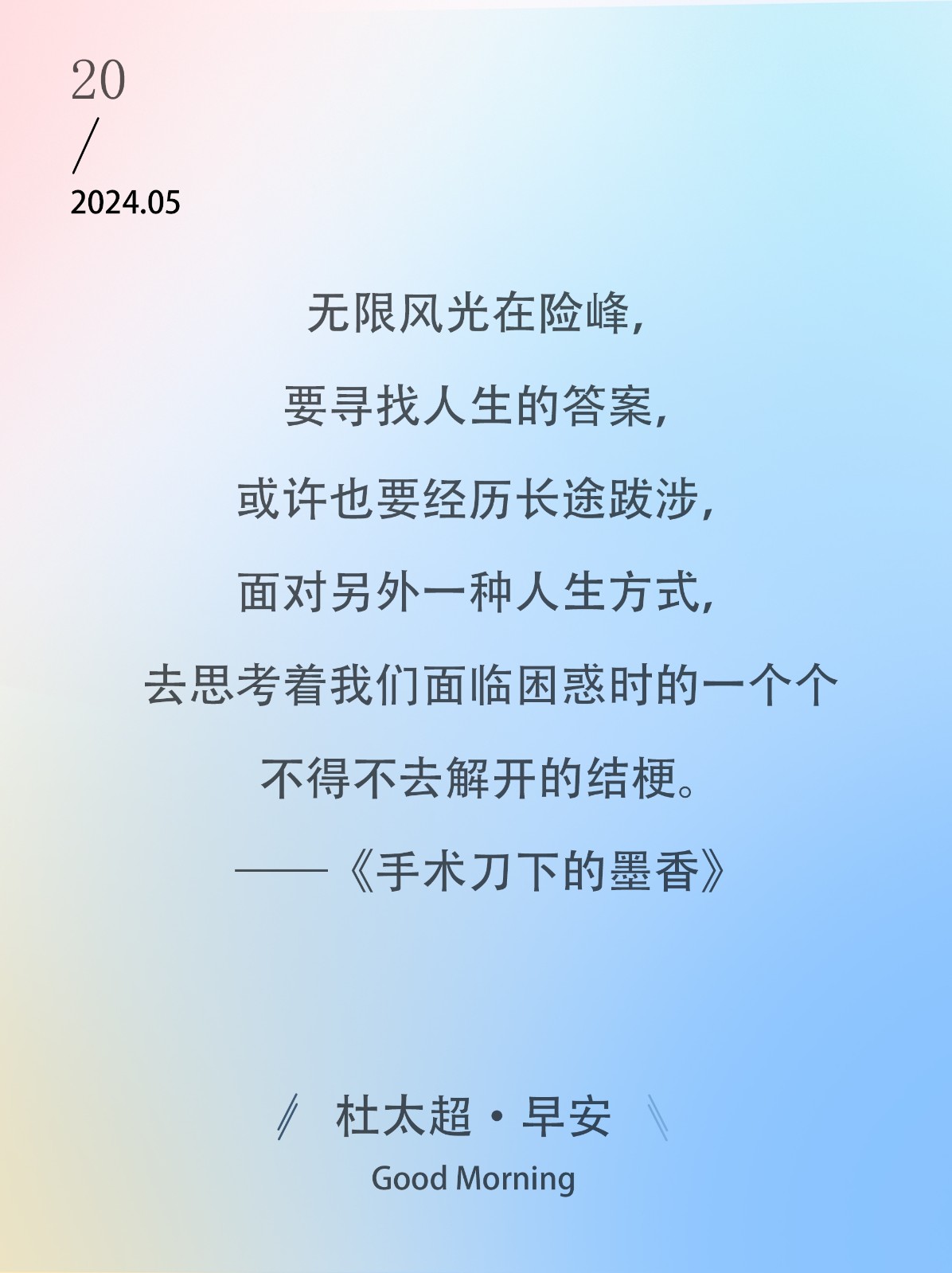 面对眼前的景象,我不敢奢望,小心细微地感受着眼前和脚下的一切,还有那一缕缕从磅礴的葱茏林间蒸腾而出的新鲜气息。——《手术刀下的墨香》